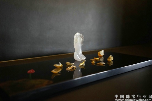 此外,“昭仪会”内还汇聚了全国品质较高的翡翠珠宝及当代艺术翡翠精品。浓翠欲滴的绿色翡翠、晶莹剔透的无色翡翠、幽深静谧的时尚墨翠,将西方珠宝设计理念与东方传统翡翠完美结合,曾经翡翠的老气横秋荡然无存。纯净明亮的主石,辅以精湛的珠宝设计和镶嵌工艺,清新灵动的时尚之感,婉约大气的珠宝之光溢于言表。而当代艺术家邱启敬的翡翠艺术精品则用充满灵性的翡翠作为天然载体,对生命和自然做出本真的诠释。通过传统东方艺术中的琢玉之道,将精湛工艺与艺术表现跨界结合,在翡翠的现代性与传统技艺之间创造了一种观念上的沟通和印证的路径。
