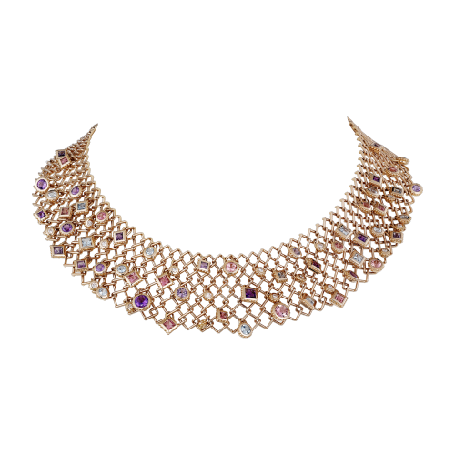 采用黄金、玫瑰金、彩金等材质,并可以搭配彩色珠宝显示出华贵的气质