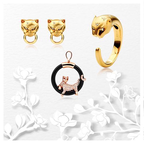 丛林猛兽活泼、柔美、野性、性感、凶猛、动感。猎豹野性难驯,倔强叛逆,有其独特的王者风姿,令人眼前一亮。千叶珠宝的猎豹戒指,贴合指节,展现出猎豹完美的身姿。优雅的猎豹柔软,流畅的盘在圆圈上,尾部的线条更显灵动,猎豹吊坠优美的无懈可击。通过猎豹元素,我们不仅可以体会到设计师的独具匠心,更能看到千叶珠宝的野心勃勃,利用猎豹展现其实力,一路飞驰,通往王者的殿堂。