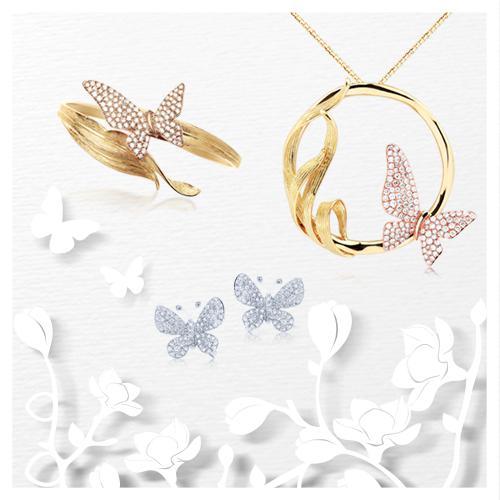 昆虫世界无论是翩翩飞舞的灵动仙子,还是森林丛野中的脆弱精灵,蝴蝶一直是生命力的代表,具有灵性,在中国蝴蝶更是被赋予了真爱和自由的化身,千叶珠宝推出丛林精灵系列,并且把设计了不对称蝴蝶,使其显得更为特别,让动的蝴蝶翩然于你的指尖耳畔,尽情释放女性的优雅与魅力。