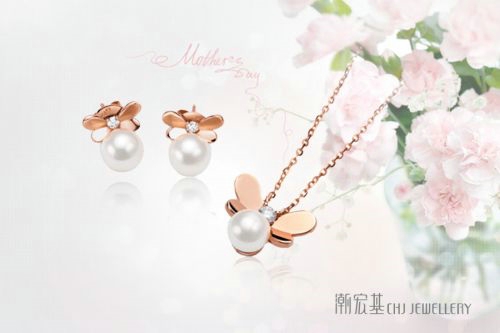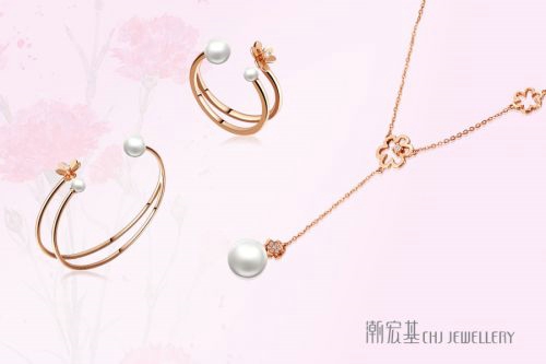 潮宏基“AKOYA系列”,采用稀有珍贵的AKOYA 日本海水珍珠作为设计主体,搭配蝴蝶、爱心等元素,优雅中不失俏皮,小巧精致,简单百搭。