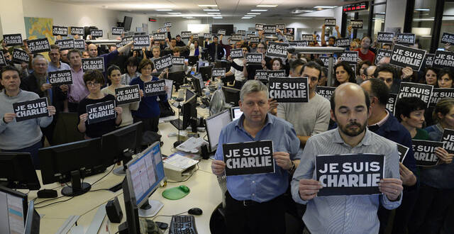 7/11在巴黎共和广场已经有近5000人自发聚集,纪念遇害者。法国媒体界也纷纷表示对《查理周报》的支持,大书“我是查理”。