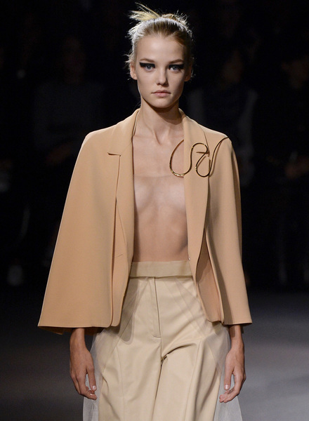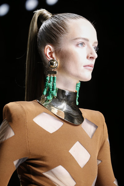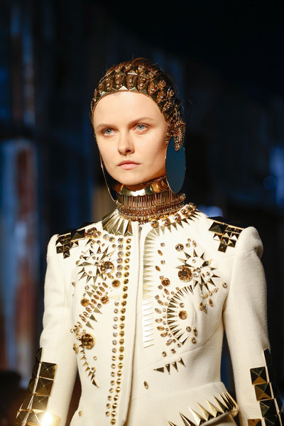 Balmain 2016春夏6.“别致”项圈另一全新的配饰概念,是常见于古罗马古希腊的战士铠甲中,夸张而大型的项圈。Balmain,和J.W.Anderson都对此灵感的设计进行了不同诠释,尤其Christian Dior巧妙地实用丝带+项链的形式,既保留了品牌原有优雅的风格,又没有放弃这股配饰流行浪潮。无论是以严谨精致作为品牌文化的品牌,还是一贯在设计上具有大胆突破的品牌,都在“项圈”部分大做文章,除了图中提到品牌,还包括Louis Vuitton, Elie Saab, Maison Margiela和Francesco Sconamiglio也都有不同款式的项圈设计。