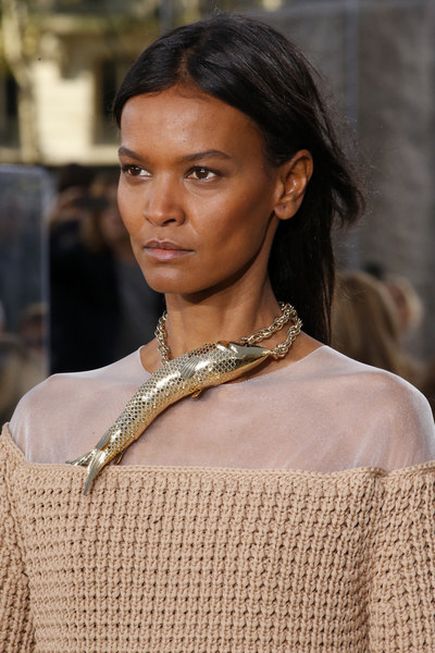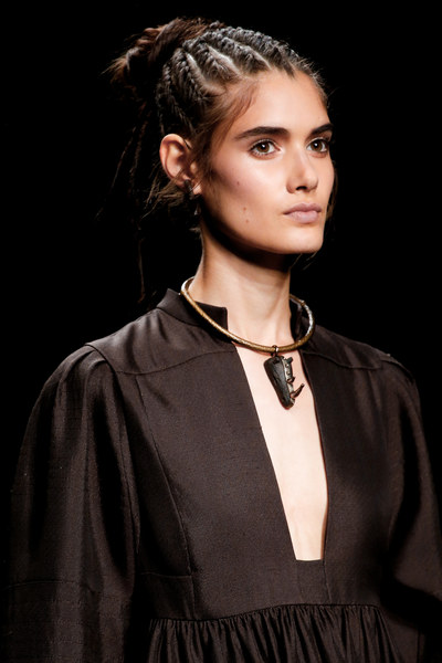 Bottega Veneta 2016春夏10.原始石材夸张的原始石头被镶嵌在银饰材质之中出现在Hermès秀场中,也在Nadege Vanhee-Cybulski’s设计的极简流线型T台造型中尤为突出。而原石、水晶、贝壳等材质也在不同程度上看似像最原始的形态,其实则经过了设计师们精心的编排与打磨,并配以其它不同材质,出现在Bottega Veneta、Giambattista Valli和Tory Burch等品牌的秀场中。