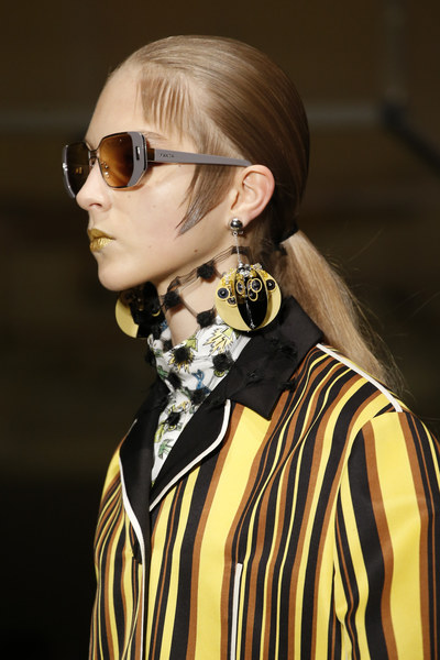 时尚界中的“珍奇”很多时候被看作是种“恶趣味”,本季获此殊荣的第一名非Loewe莫属,巨大的写实鱼形项链在T台上突兀而有趣,当然,还有更多“水下生物”在Emilio Pucci的设计下得到全新而有趣的解释。除了关于海洋的奇幻之旅,Prada还向Disco舞厅借了Disco球作为耳饰,包括Moschino的警戒带在内的一系列珍奇设计,都像我们预示着关于一场“大俗大雅”的边缘趋势。