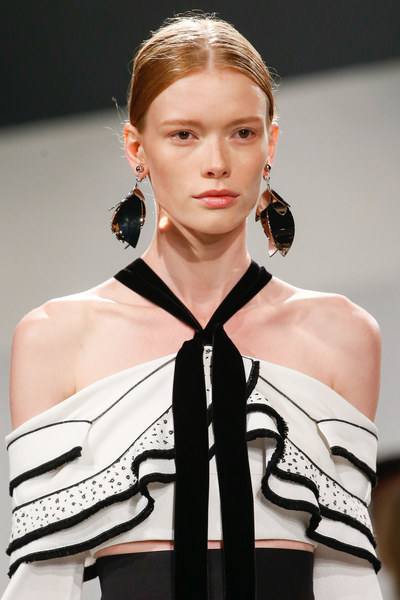 Céline 2016春夏5.耳朵上的波普艺术1960年代的feel弥漫着整个春夏时装周,而夸张波普元素设计的耳饰则成为本季T型台上的而是主打选手屡次亮相。Céline光滑漆面的橡胶树脂耳环、Marni螺旋状的镜面金属耳环和大片羽毛耳饰,搭配1960年的时代偶像Twiggy的招牌式眼妆⋯⋯鲜明的时代标签预告着接下来的又一波属于波普的时尚返潮。