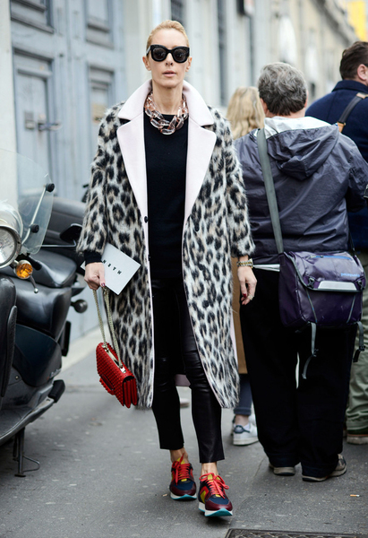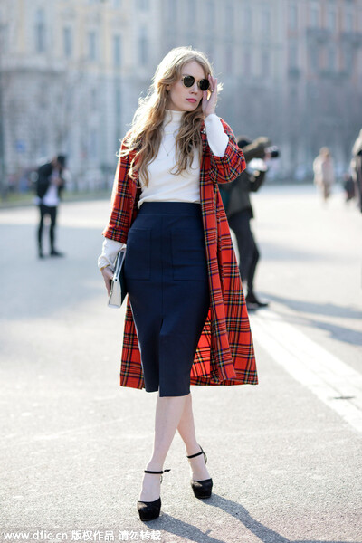 土耳其版《Vogue》特约编辑Ece Sukan,将长度相近却不一的长项链叠戴,平衡了正红色强烈的饱和感,即便是搭配廓形感十足的硬朗长大衣也女人味十足。