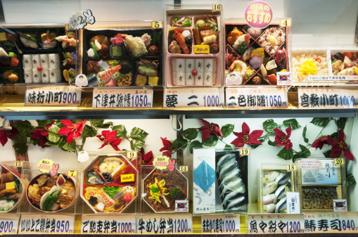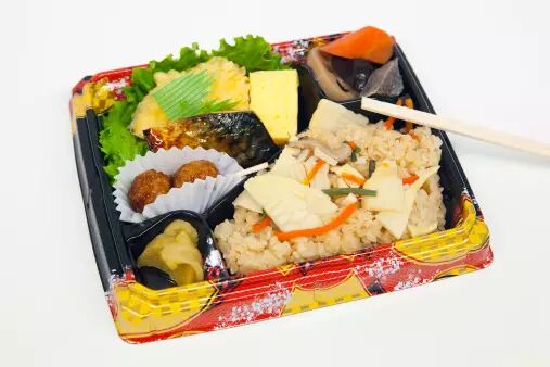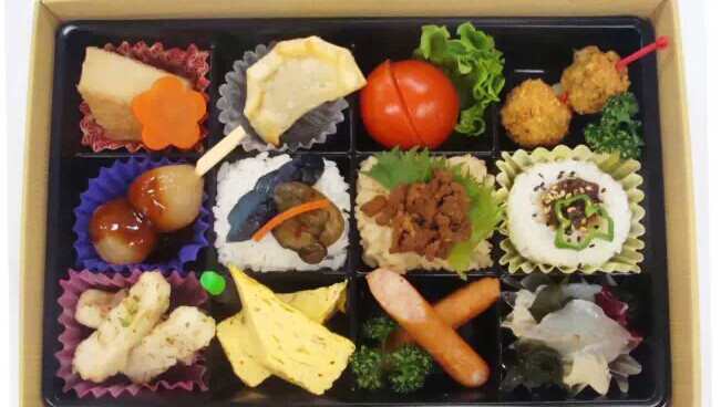 日本火车盒饭主推当地特色美食。一般食材都采购自当地。 据说,营养搭配丰富,一盒饭有时可包含二十多种食材。