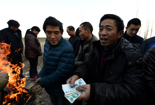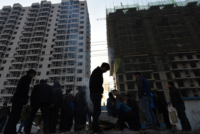6/82015年1月8日,在山西太原市小店区西温庄乡西贾村,讨薪的农民工聚集在一起烤火取暖。身后,就是他们辛苦了3个多月的建筑工地。新华社记者 燕雁 摄