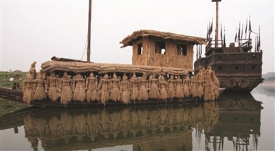 拍摄电影《赤壁》时用的草船。(资料图)