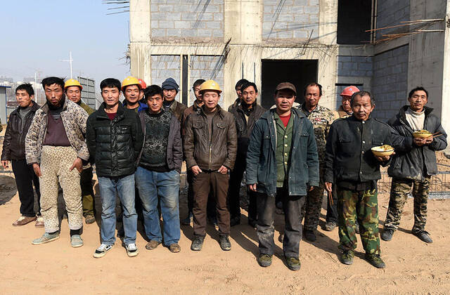 2/8图为部分在河南省许昌市鄢陵县东方威尼斯二期工程打工未拿到工程款的农民工(2015年1月10日摄)。新华社记者 李博 摄