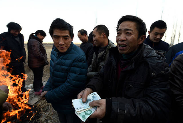 6/82015年1月8日,在山西太原市小店区西温庄乡西贾村,讨薪的农民工聚集在一起烤火取暖。身后,就是他们辛苦了3个多月的建筑工地。新华社记者 燕雁 摄
