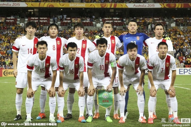 1/182015年1月22日,澳大利亚,2015亚洲杯1/4决赛,中国Vs澳大利亚。后排左起:吉翔,蔡惠康,任航,张呈栋,王大雷,张琳芃。前排左起:吴曦,孙可,郑智,梅方,武磊