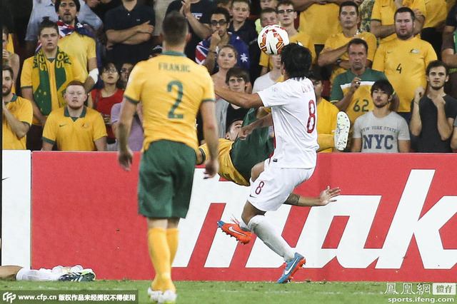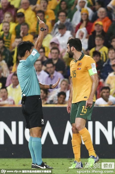8/18第19分钟,澳大利亚队长耶迪纳克放倒任航,裁判出示了一张黄牌!