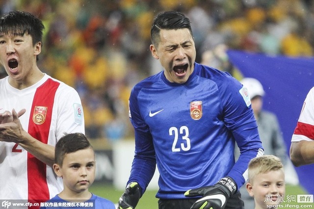 2/18开场奏国歌时王大雷十分激动,显得斗志很足。