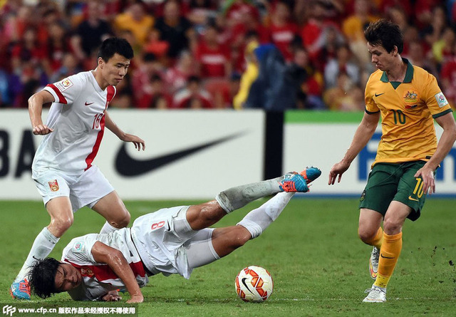 12/18下半场第4分钟,这球布雷西亚诺开出角球,郑智倒地后中国球员有点愣,被卡希尔抓住了机会!图为丢球之后的中国球员失望的表情。