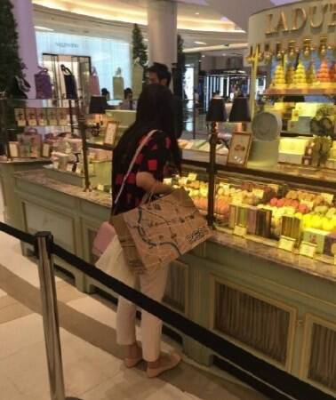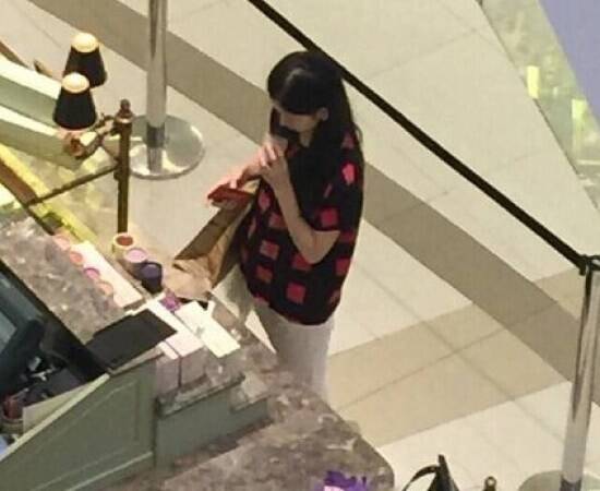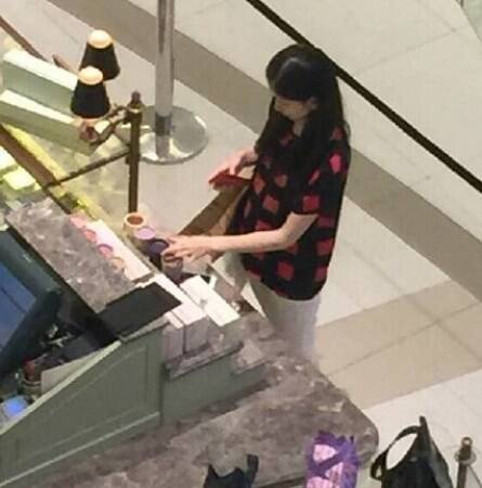 5/11网友拍到奶茶妹妹在秦国购物的照片,照片中奶茶妹妹着花格子T恤,精心地挑选着化妆品,看似心情不错。