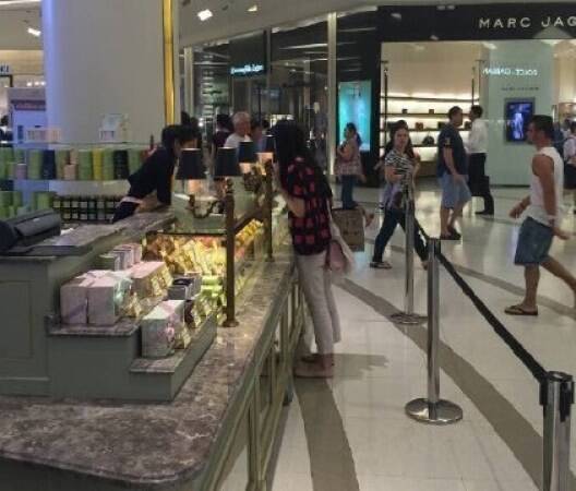 8/11网友拍到奶茶妹妹在秦国购物的照片,照片中奶茶妹妹着花格子T恤,精心地挑选着化妆品,看似心情不错。