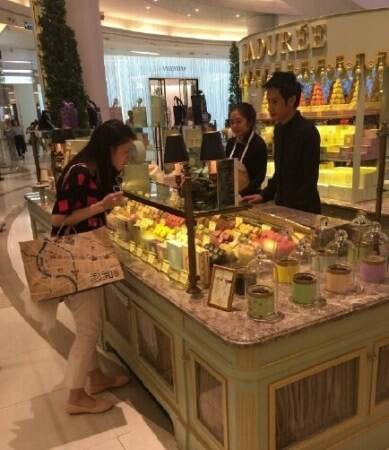 9/11网友拍到奶茶妹妹在秦国购物的照片,照片中奶茶妹妹着花格子T恤,精心地挑选着化妆品,看似心情不错。