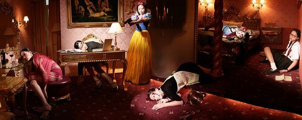 1/412008年,何孟娟以白雪公主的扮相出现在她的作品中,从初期公主孤零零单独一人,时而与自己秘密对话,时而大喇喇地与社会场景正面遭遇,到近期发展成一人分饰多角,透过数位技术构成庞大叙事场景,场景中各种角色的对立面冲突尔虞我诈。