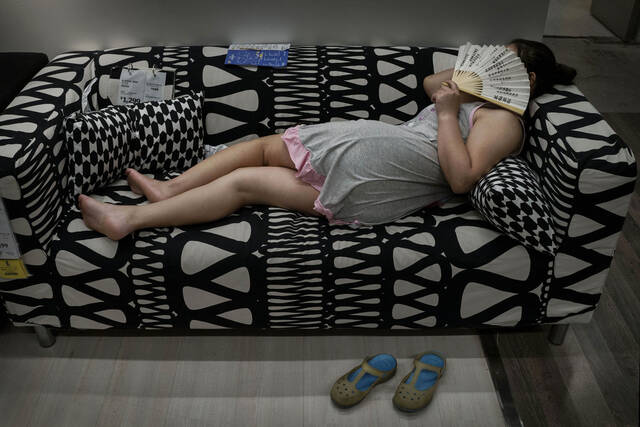 5/202014年7月6日,北京,顾客在宜家商场陈列的沙发或床上睡觉休息。宜家在中国的商店更多的是为了迎合中产阶级的购买力,商店并不阻拦顾客在这里睡觉,甚至会在一些家具上进行标示,邀请顾客亲自体验。