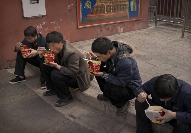 12/202014年3月26日,北京雾霾天,民工在地上吃方便面。