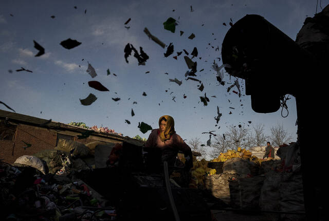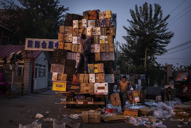 3/202014年12月15日,北京东小口村,一名工人在粉碎塑料的机器旁工作。北五环外的东小口村是北京有名的“垃圾村”,长年堆积着大量从城区收来的废品,高峰时有3万多废品回收人员。近几年列入北京市城区改造范围后,村里的废品拆拣规模有所减少,但仍有近万人聚集。