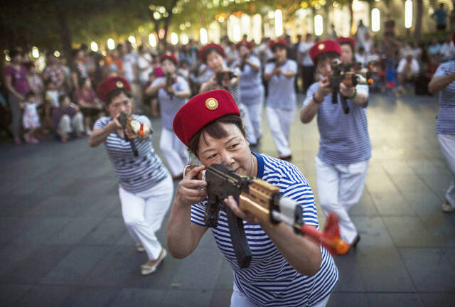 8/202014年7月8日,北京,大妈们表演自编自导自演的广场舞“地道战插曲”。7月7日为七七卢沟桥事变77周年。