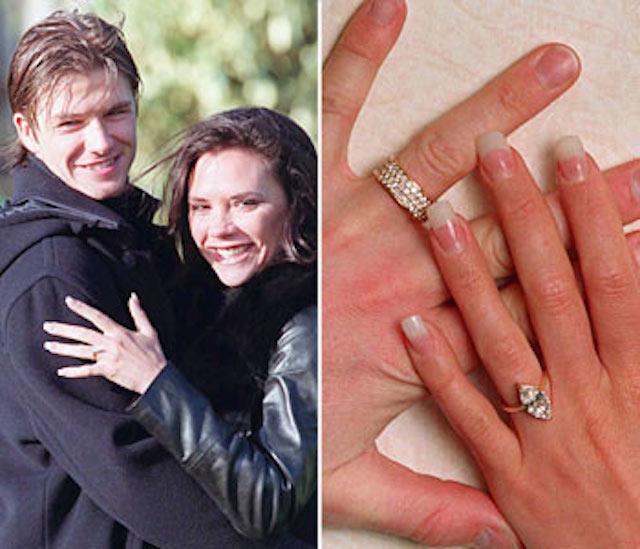贝克汉姆夫妇向来高调,说到婚戒,就不得不说维多利亚的那只梨形戒指。在结婚6周年纪念日上,小贝送给辣妹的戒指是一枚价值2万英镑的白色钻戒。