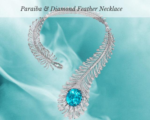 Paraiba碧玺和钻石 羽毛项链