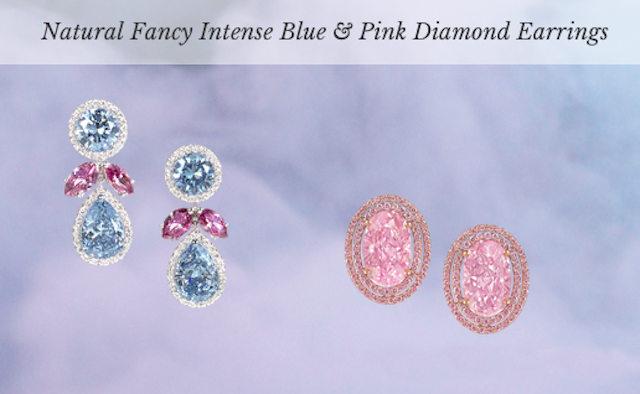 Fancy Intense级别蓝钻和粉钻耳环