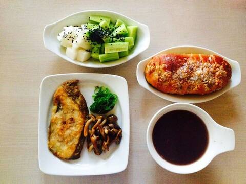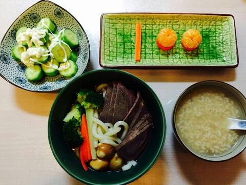 3. 如何不费时。图示几份早餐肯定会有人觉得是在作秀,不可能天天坚持的下去。事实不是这样的,小吕的这位学员每天给儿子做的早饭都是如此,而且用时均在20分钟以内。怎么做到的呢?每天早上的时间对大家来说都极为宝贵,尤其是上班族,往往都是能多睡一会是一会,估计没几个人能拿出时间来淘米熬粥、洗菜拼盘。所以,前一天晚上的准备工作就特别重要。以上面的第三份早餐为例:小黄瓜、红枣大米粥、葱油乌冬面(乌冬面、鹌鹑蛋、卤牛肉、西兰花、胡萝卜)、小橘子。头一天晚上把所有食材准备好,第二天早上起来只需要下一个面的时间就够了,下面时间的同时把黄瓜一切,小橘子剥一下就可以啦~