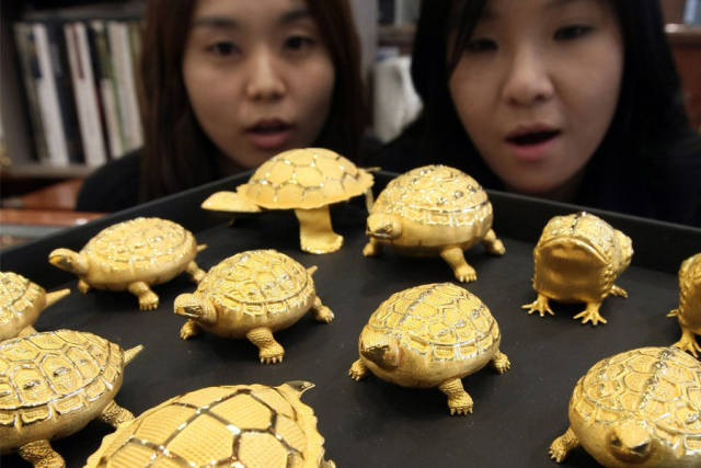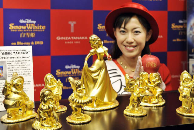 2009年11月4日,纯金迪斯尼造型:白雪公主和七个小矮人,3000万日元(约合30万美元)的价格。该模型是由日本东京田中贵