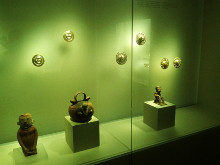 馆内收藏着 26,000多件价值无法估量的古代印第安人使用过的金器,还有许多玉石制品,还珍藏着世界上最大的翡翠。再现了印第安人早年的文化和斗争的历史。黄金博物馆里的这些陈列品,有着不平凡的历史。