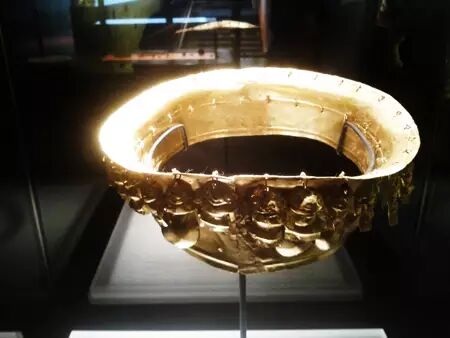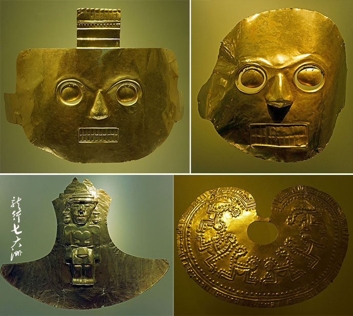 古老的印第安人与其他古老的民族一样,也相信人死后还有来世。因此,当一个人去世时,他们往往将金器塞入死者腹内以防止尸体腐败并保护灵魂,还要把他生前所用的黄金珍宝随葬。在黄金博物馆的陈列大厅里复原陈列着一个部落酋长的墓葬,观众可以清楚地看到,墓中安卧着酋长,头戴金帽,脸盖金面罩,耳戴金耳环,脖子上戴着12个金项圈,胸前挂着一面很大的金锣,手腕上和脚脖上挂满了金镯子,手中握着金宝剑,尸体旁还散放着许多陪葬的金制器皿。这个1000多年前的部落酋长死时用掉的黄金实在是令人惊叹!