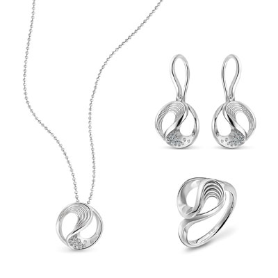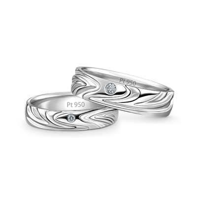 水因势而万行,因光而万色,温柔又澎湃,纯净又内涵无穷。水,代表融合、包容、坚固的情感。选取两水交汇的奇妙形态,利用坚固铂金及其纯白色泽,将水纹以阴、阳的雕刻手法运用于首饰中,象征新婚佳偶,完美交融,挚爱绵长。
