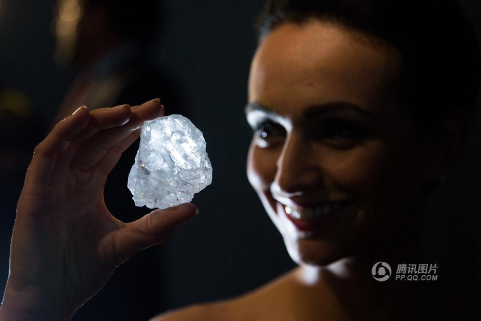 当地时间2016年6月14日,英国伦敦,苏富比拍卖行展出史上第二大钻石原石“我们的光”。(视觉中国) (来自:腾讯图片)