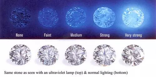 首先解释下,所谓钻石的荧光反应,指的是钻石在受到紫外线照射下,自身发出的蓝色或黄色的荧光。大部分天然的钻石都存在荧光反应。